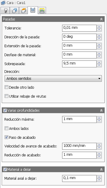 Para las operaciones de desbaste, se deja una pequeña cantidad de material por defecto, que se puede eliminar posteriormente mediante una o varias operaciones de acabado.