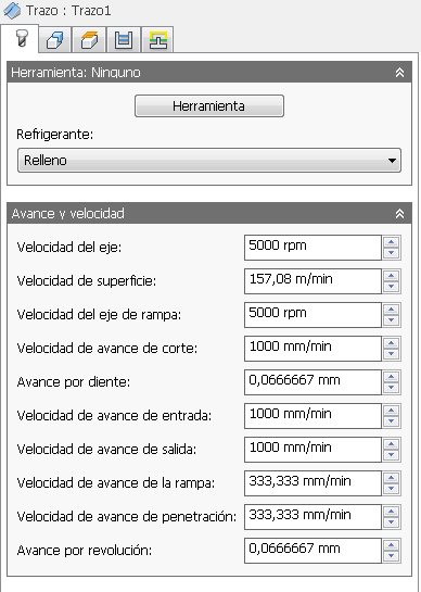 Si se cambia el material radial a dejar, el material axial a dejar se define automáticamente en la misma cantidad, a menos que se introduzca manualmente el valor de material axial a dejar.