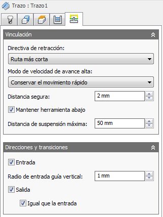Radio del arco vertical que suaviza el movimiento de entrada a medida que avanza hasta la propia ruta de herramienta.