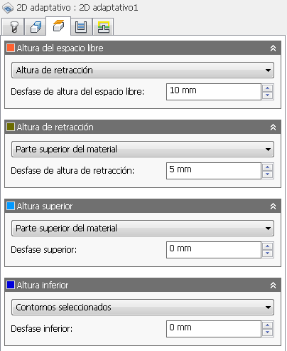 El Desfase de altura de retracción se aplica y guarda relación con la selección de Altura de retracción en la lista desplegable anterior.