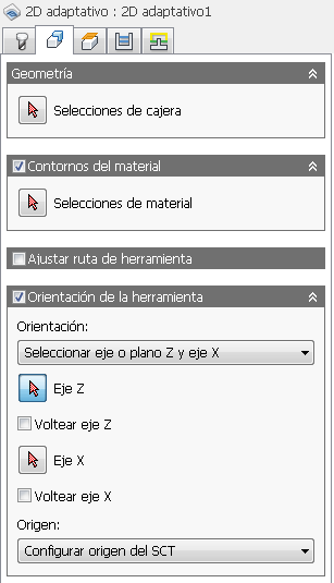 Una estrategia Limpieza adaptativa crea una ruta de herramienta a partir de contornos encadenados en lugar de superficies o sólidos. Es posible definir un ángulo de inclinación para las paredes.