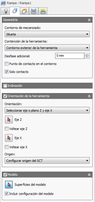 Desde el ángulo de inclinación se define desde el plano de 0° (horizontal). Solo se mecanizan las áreas iguales o mayores que este valor.