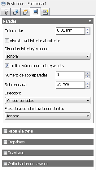 Para las operaciones de acabado, el valor por defecto es 0 mm (0 pulg.), es decir, no se deja material.