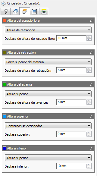 El Desfase de altura de retracción se aplica y es relativo a la selección de Altura de retracción en la lista desplegable anterior.