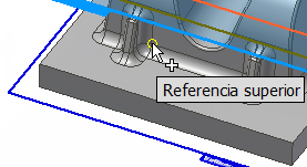 para cerrar el cuadro de diálogo Biblioteca de herramientas. Por defecto, la estrategia de acabado Horizontal también mecaniza en la parte superior de la pieza y las pequeñas áreas planas en los salientes de la pieza. En esta operación, solo nos interesa la cara plana inferior y, por lo tanto, podemos limitar el rango de profundidad que se va a mecanizar.