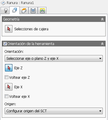 Selección de geometría para una operación Ranura