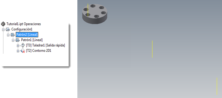 Una vez creado el patrón, deberá seleccionar la carpeta de patrón en el Navegador de CAM para simular o ejecutar el procesamiento posterior de todo el patrón con todas las rutas de herramienta duplicadas. Si solo selecciona las operaciones incluidas en la carpeta de patrón, solo se simularán estas sin tener en cuenta ningún patrón.