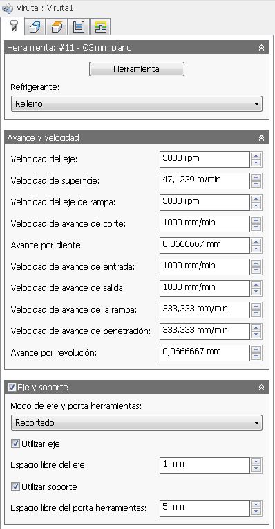 Si se cambia el material radial a dejar, el material axial a dejar se define automáticamente en la misma cantidad, a menos que se introduzca manualmente el valor de material axial a dejar.