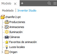 - Ahora se puede alternar fácilmente entre el modelo, el ensamblaje y otros navegadores del entorno con un solo clic. Por ejemplo, si el entorno de Inventor Studio está activo, ahora solo tiene que hacer clic para alternar entre el navegador de Inventor Studio y el navegador de modelado.