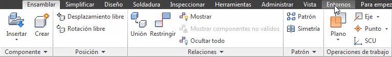 - En un archivo de ensamblaje, haga clic en la ficha Entornos de la cinta de opciones.
