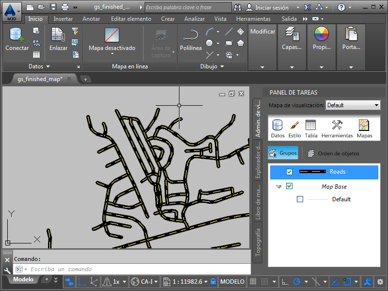 Guardar. Tenga en cuenta que los archivos de mapa utilizan la extensión .dwg, al igual que los dibujos de AutoCAD. Ambos tipos de archivo utilizan el mismo formato de archivo básico.