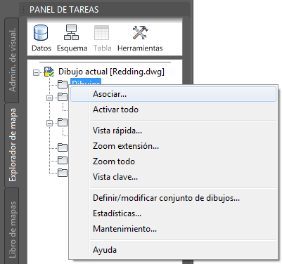 Enlazar dibujos desde la ficha Explorador de mapa del Panel de tareas.
