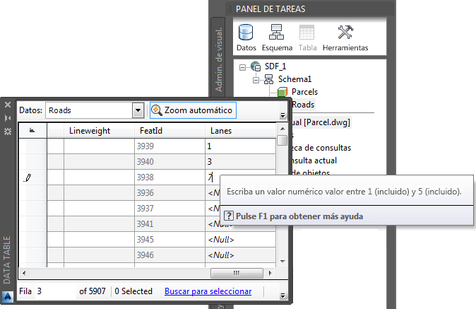 Ha conectado con el archivo SDF creado anteriormente y ha añadido una propiedad nueva a su esquema. Ha indicado valores para la nueva propiedad en la Tabla de datos.