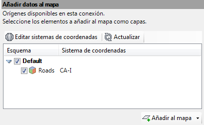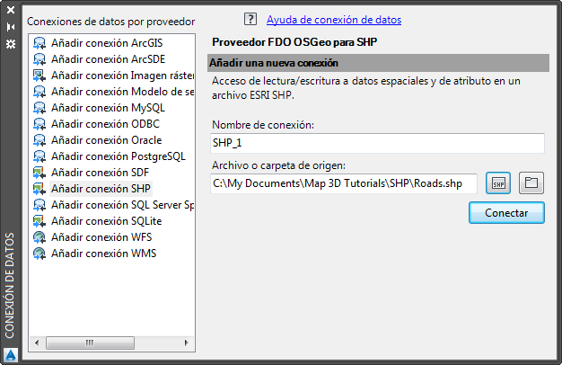 - Haga clic en Conectar para añadir el archivo SHP Roads como origen de datos.