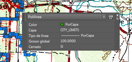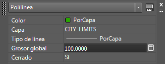 En este ejercicio cambiará el grosor de la polilínea que representa el límite de la ciudad. Los límites de la ciudad se muestran de forma más destacada en el dibujo. A continuación, delimitará la imagen para mostrar una parte rectangular que enmarca la ciudad.