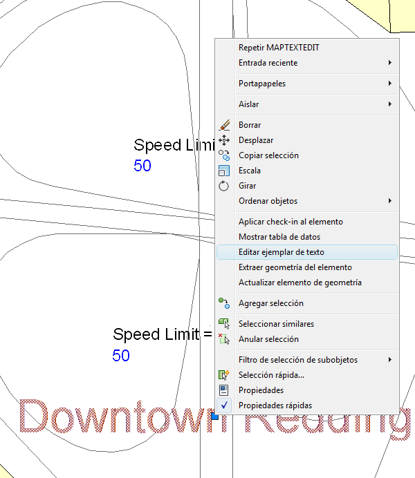 Haga clic en el ejemplar de texto “Downtown Redding”, haga clic con el botón derecho y haga clic en Editar ejemplar de texto.