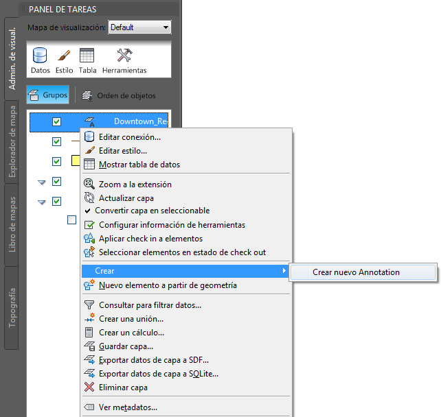 Cada anotación es un "ejemplar de texto". Puede añadir varios ejemplares de texto a una capa de texto. Cuando más adelante conecte con la capa de texto, todos los ejemplares de texto se insertan en el mapa.