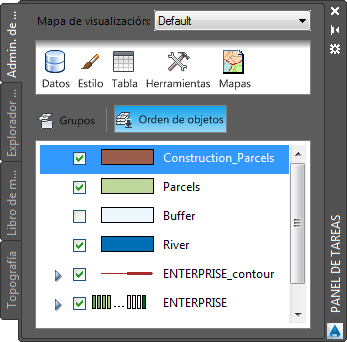 - En el Administrador de visualización, haga clic en Ordenar objetos.