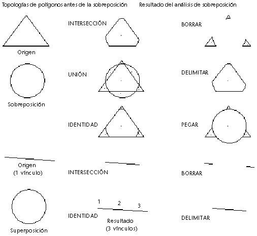 Al superponer dos topologías, debe elegir el método de interacción entre las dos topologías seleccionadas. En algunos casos, el resultado varía en función de la topología que sea el origen y la que sea superpuesta.