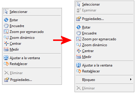Para buscar las herramientas más habituales, basta con hacer clic en el botón derecho del ratón. El lado izquierdo de la imagen siguiente muestra el antiguo menú del botón derecho del ratón y el lado derecho muestra el aspecto que tiene en esta versión. Todas las herramientas de manipulación de modelos aún se encuentran en el nivel superior y se puede acceder a ellas con un solo clic.