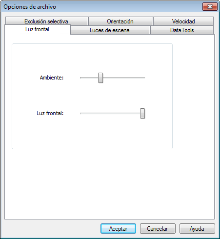 - Mueva el control deslizante Ambiente para ajustar el brillo de la escena y el control deslizante Luz frontal para ajustar el brillo de la luz direccional.