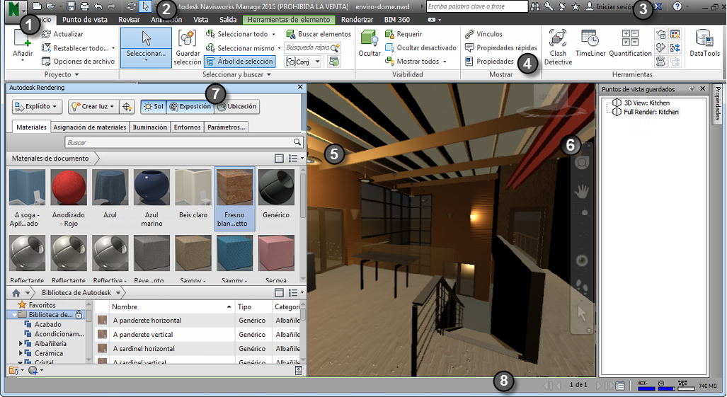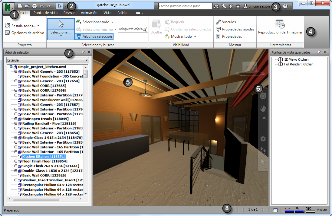 En esta sección, se describen brevemente los componentes principales de la interfaz estándar de Autodesk Navisworks.