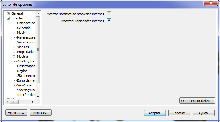 - Seleccione la casilla Mostrar propiedades internas para agregar propiedades de objetos a la ventana Propiedades.