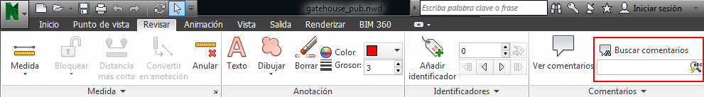 - En el cuadro de texto Búsqueda rápida de comentarios, escriba la cadena de texto que desea buscar en las propiedades de todos los comentarios. Puede tratarse de una o varias palabras. Por ejemplo, si escribe anotación y ejecuta la búsqueda, solo aparecerán los comentarios que contengan la palabra "anotación".