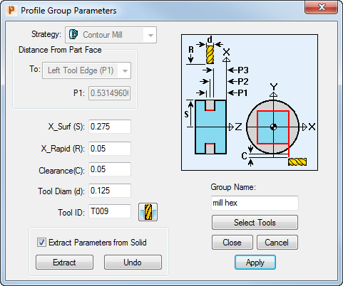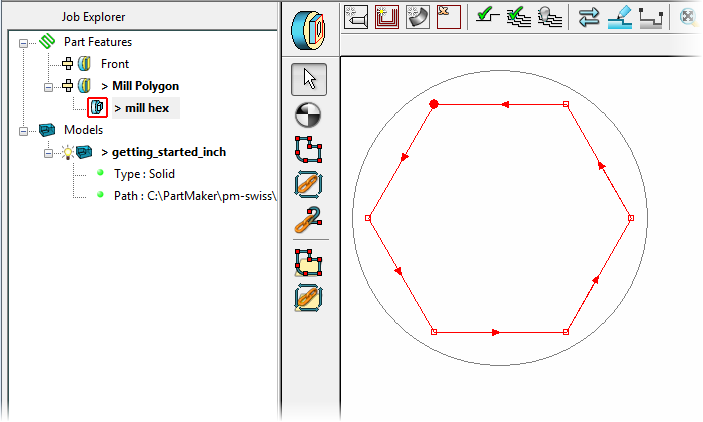 This section describes how to create a milling toolpath to mill the hexagon on the part.