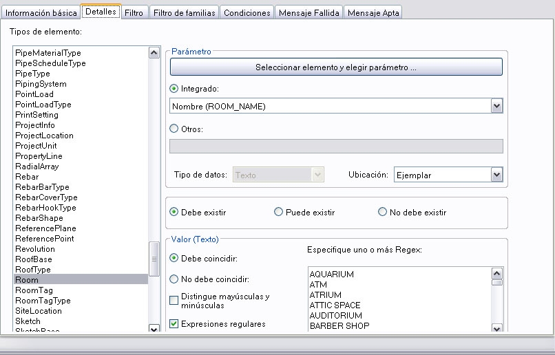 La ficha Detalles controla los elementos que se examinarán en cada comprobación de Model Review.
