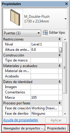 Un grupo de ventanas permiten tener más de una ventana en un mismo espacio de la pantalla. Cuando se agrupan ventanas, cada una de ellas se representa mediante una ficha en la parte inferior del grupo. En un grupo, haga clic en una ficha para que se muestre esa ventana. Puede agrupar o desagrupar ventanas según sus necesidades. En la imagen siguiente, el Navegador de proyectos y la paleta Propiedades aparecen agrupados. Tenga en cuenta que la paleta Propiedades es la ficha activa.