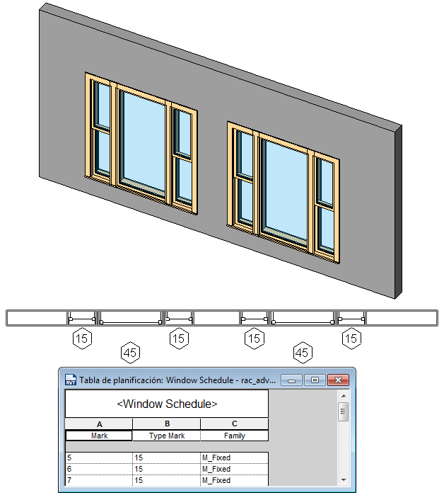 Si una familia anidada contiene varias categorías, cada ejemplar de una familia anidada aparece en su correspondiente tabla de planificación y todos los componentes figuran en una tabla de planificación de multicategoría.