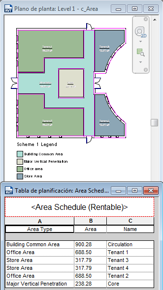 Plano de área y tabla de planificación de áreas