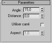 Lorsque l'option Utiliser carré est activée, règle l'aspect (les proportions) de la base du cône rectangulaire. Valeur par défaut : 1,0.
