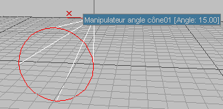 Le manipulateur angle cône est un cône dont la base est réglable. En associant sa valeur Angle à un paramètre d'un autre objet, vous disposez d'un contrôle personnalisé, avec feedback visuel, sur cet objet.