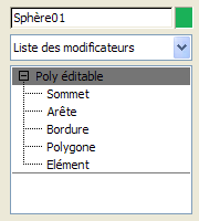 Lors de l'édition d'un objet au niveau du sous-objet, vous ne pouvez sélectionner que les composants de ce niveau (sommets, arêtes, polygones, etc.). Il n'est pas possible de désélectionner l'objet courant ni de sélectionner d'autres objets. Pour quitter le mode d'édition de sous-objet et revenir au niveau d'édition d'objet, cliquez sur le nom de niveau le plus élevé dans la pile de modificateurs, ou cliquez sur le niveau de sous-objet en surbrillance.