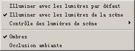 Affiche un sous-menu contenant des options pour l'éclairage et les aperçus d'ombrage.