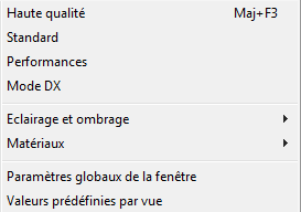 Remarque : Ces options ont une incidence uniquement sur l'affichage des fenêtres ; elles n'ont aucun effet sur le rendu de la scène.