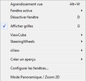 Ce sous-menu propose des options pour l'affichage et l'utilisation de ViewCube.