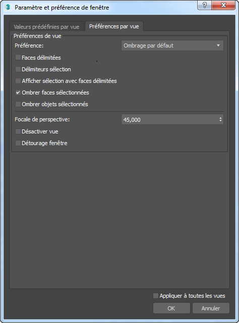Ces contrôles s'appliquent uniquement aux fenêtres Perspective.