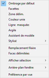 - Affiche un sous-menu contenant des options pour l'affichage de faces sélectionnées : avec arêtes ou ombré.