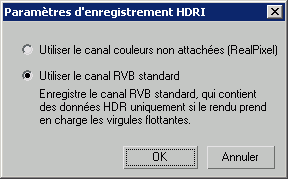 L'activation du bouton Enregistrer ou Configuration dans la boîte de dialogue Fichier sortie rendu permet d'afficher la boîte de dialogue Paramètres d'enregistrement HDR.
