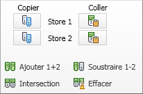Utilisez Copier store 1 et Copier store 2 sur différentes sélections de sous-objets, puis l'option Ajouter 1+2 afin de sélectionner tous les sous-objets des deux tampons de stockage.