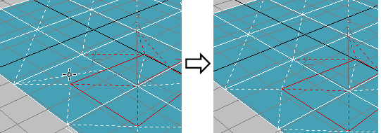 Le fait de supprimer une arête équivaut à la rendre invisible. Le maillage est affecté uniquement lorsque toutes les arêtes (ou toutes sauf une) dépendant d'un sommet sont supprimées. A ce stade, le sommet lui-même est supprimé et la surface est retriangulée.