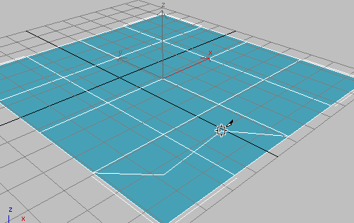 Par défaut, l'objet Plan est divisé en polygones 4 x 4. Si vous ne voyez pas les polygones dans la fenêtre Perspective, appuyez sur F4 pour activer le mode d'affichage Faces délimitées.