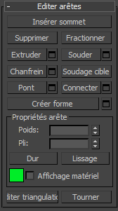Ce panneau déroulant comprend des commandes spécifiques à l'édition des arêtes.