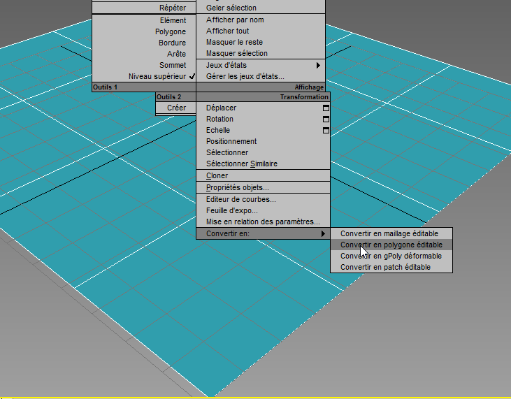 Convertir en polygone éditable. Vous pouvez également appliquer le modificateur Editer poly.