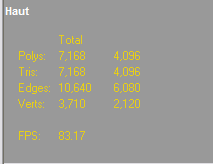 Affiche le nombre de faces triangulaires dans la scène et la sélection.