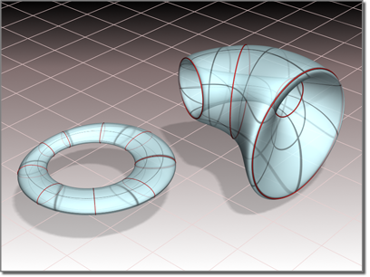 Lorsque cette option est activée, les courbes iso de l'axe V de l'extrusion U sont affichées, ainsi que les courbes de l'axe U utilisées pour construire l'extrusion. Les courbes de l'axe V sont réservées à l'affichage. Vous ne pouvez pas les utiliser pour la construction de la surface.