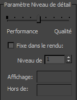 Le nombre de points visibles et le nombre total de points dans l'objet s'affichent dans les champs en lecture seule en bas du groupe Paramètre Niveau de détail : Affichage et Hors de, respectivement.